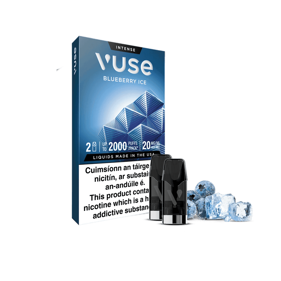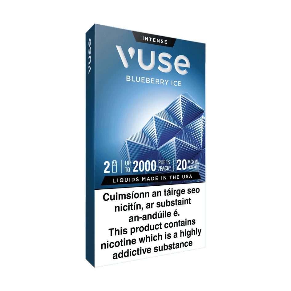 Blueberry Vuse Pods have a blueberry flavour with a cooling finish. These new Vuse PRO pre-filled e-liquid pods provide up to 2,000* puffs and provide an extra intense flavour experience. The new easy-swap Vuse Pods are compatible with Vuse PRO and Vuse GO RELOAD 1000 devices.