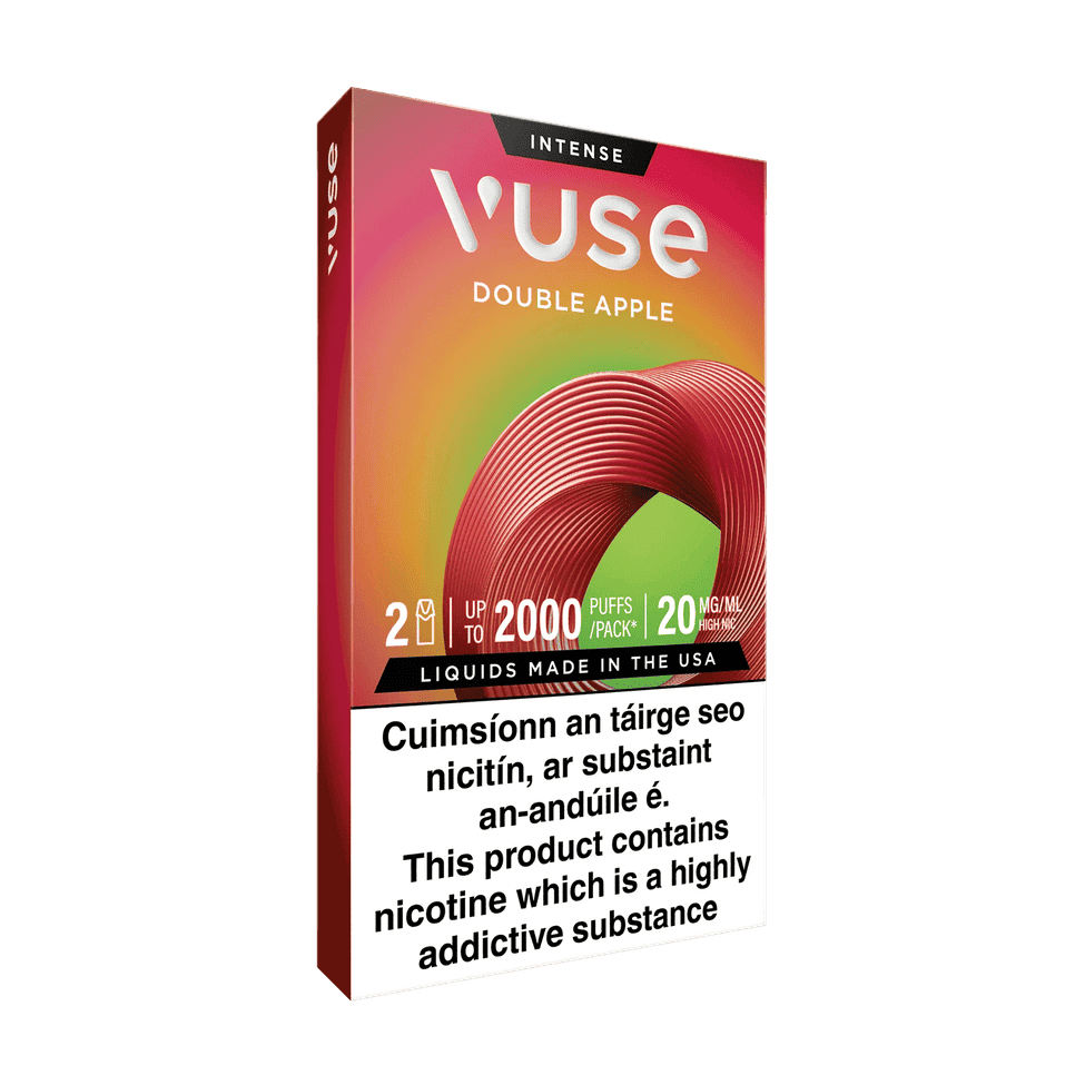 The Double Apple flavour pods with nic salts create a mix of red and green apple flavours. These new Vuse pre-filled e-liquid pods provide up to 2,000* puffs per pack and provide an extra intense flavour experience. The new easy-swap Vuse Pods are compatible with Vuse PRO and Vuse GO RELOAD 1000 devices.