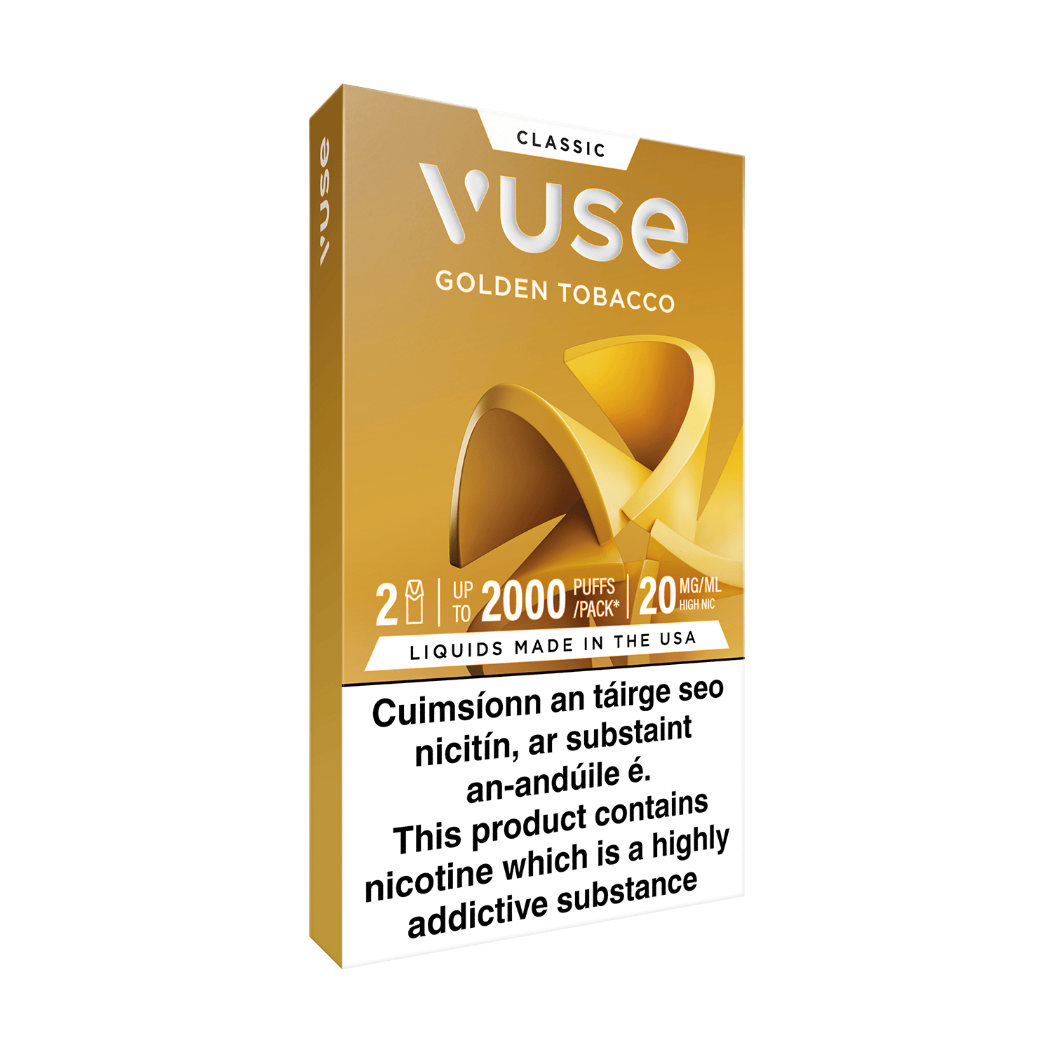 The Golden Tobacco flavour Vuse pod with nic salts is crafted using a balanced combination of smooth and creamy golden tobacco. These new Vuse pre-filled e-liquid pods provides up to 2,000* puffs. The new easy-swap Vuse Pods are compatible with Vuse PRO and Vuse GO RELOAD 1000 devices.