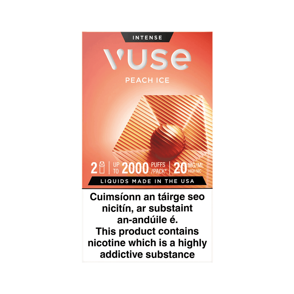 Peach Ice Vuse Pods have a peach flavours with a cooling finish. These new Vuse pre-filled e-liquid pods provides up to 2,000* puffs and provide an extra intense flavour experience. The new easy-swap Vuse Pods are compatible with Vuse PRO and Vuse GO RELOAD 1000 devices.