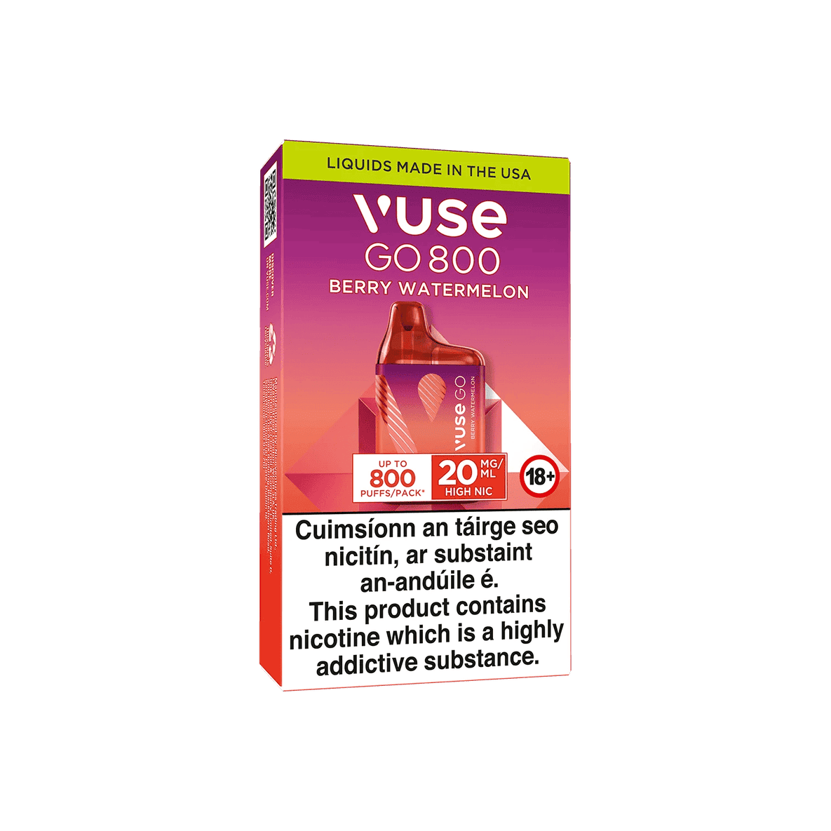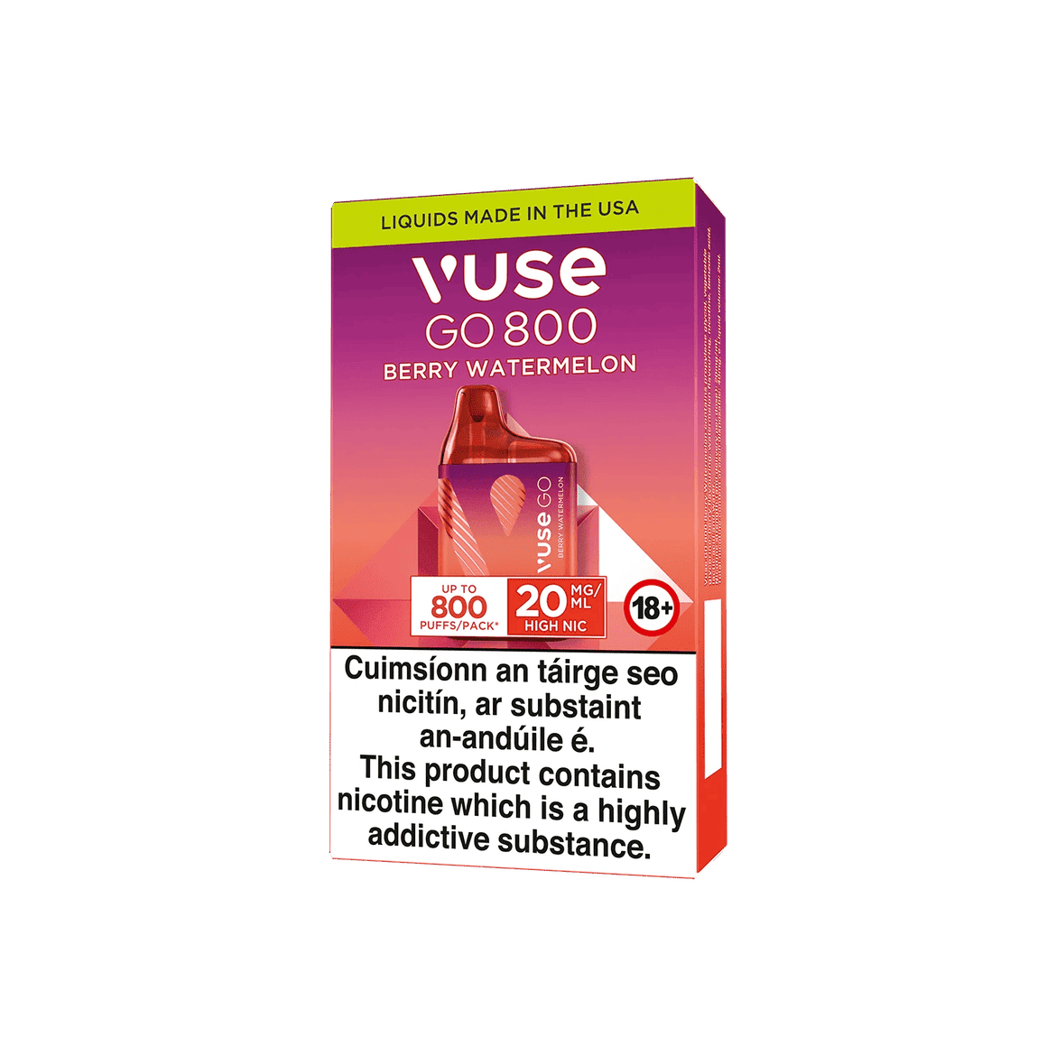 The Berry Watermelon Vuse GO 800 disposable vape is a way to enjoy vaping when you're on the go. Pre-filled with 2ml of e-liquid with a taste of red berries and watermelon, it's easy-view design allows you to see how much is left.